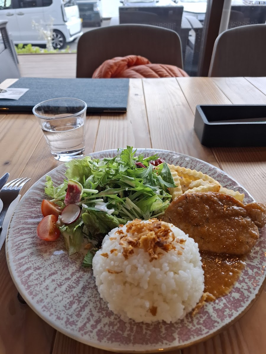The menu at LaCOSSO boasts a selection that caters to a variety of tastes, but one standout dish that beckons your attention is the Skillet Combo of Homemade Hamburger and Ebi Fry. Priced at JP¥1,400, this dish presents a delightful fusion of flavors, with a juicy homemade hamburger and crispy ebi fry sizzling on a hot skillet. Paired with a generous serving of fresh salad and fluffy rice, this hearty meal tantalizes the senses and showcases the cafe's commitment to quality ingredients.