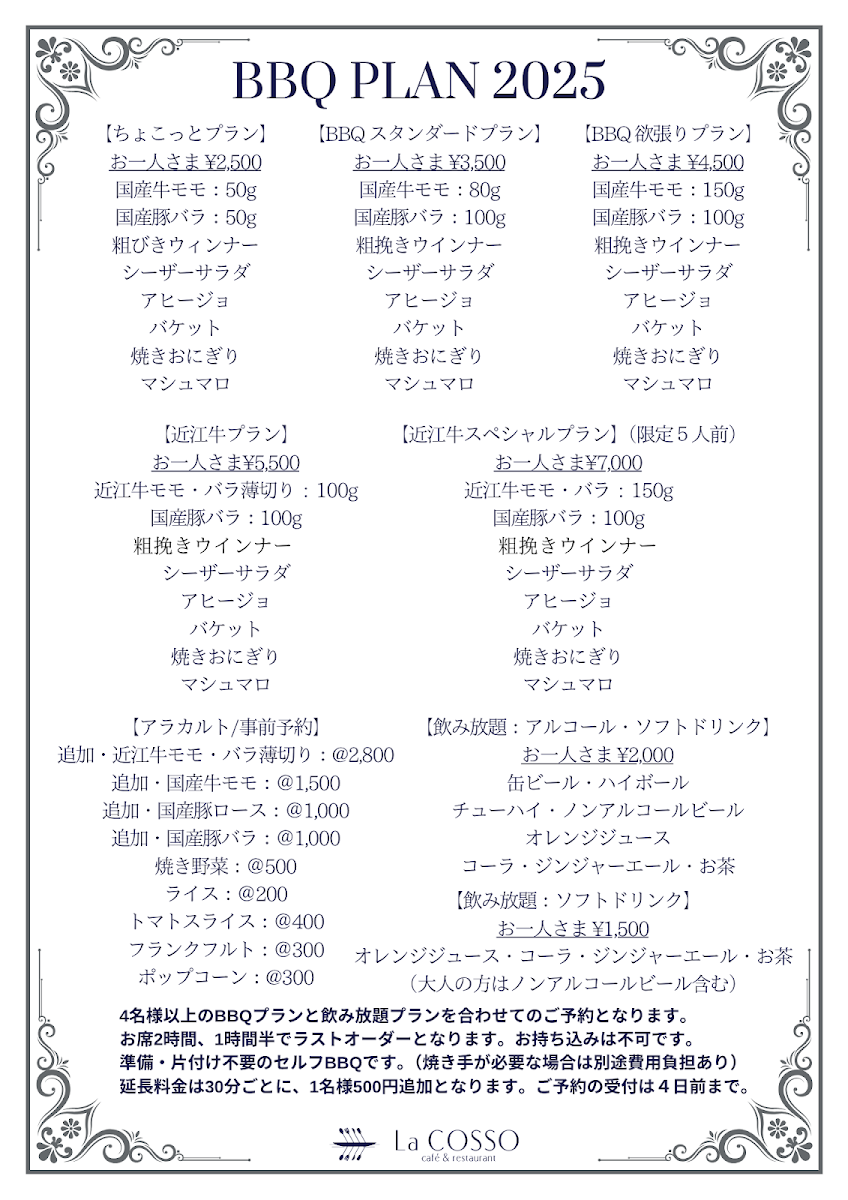 LaCOSSO also caters to evening diners with BBQ options and an alcohol pairing system that ensures your preferred drinks are continuously refilled. Whether you're savoring a meal on the terrace with your furry companion or enjoying a lively atmosphere indoors, LaCOSSO guarantees a memorable dining experience.